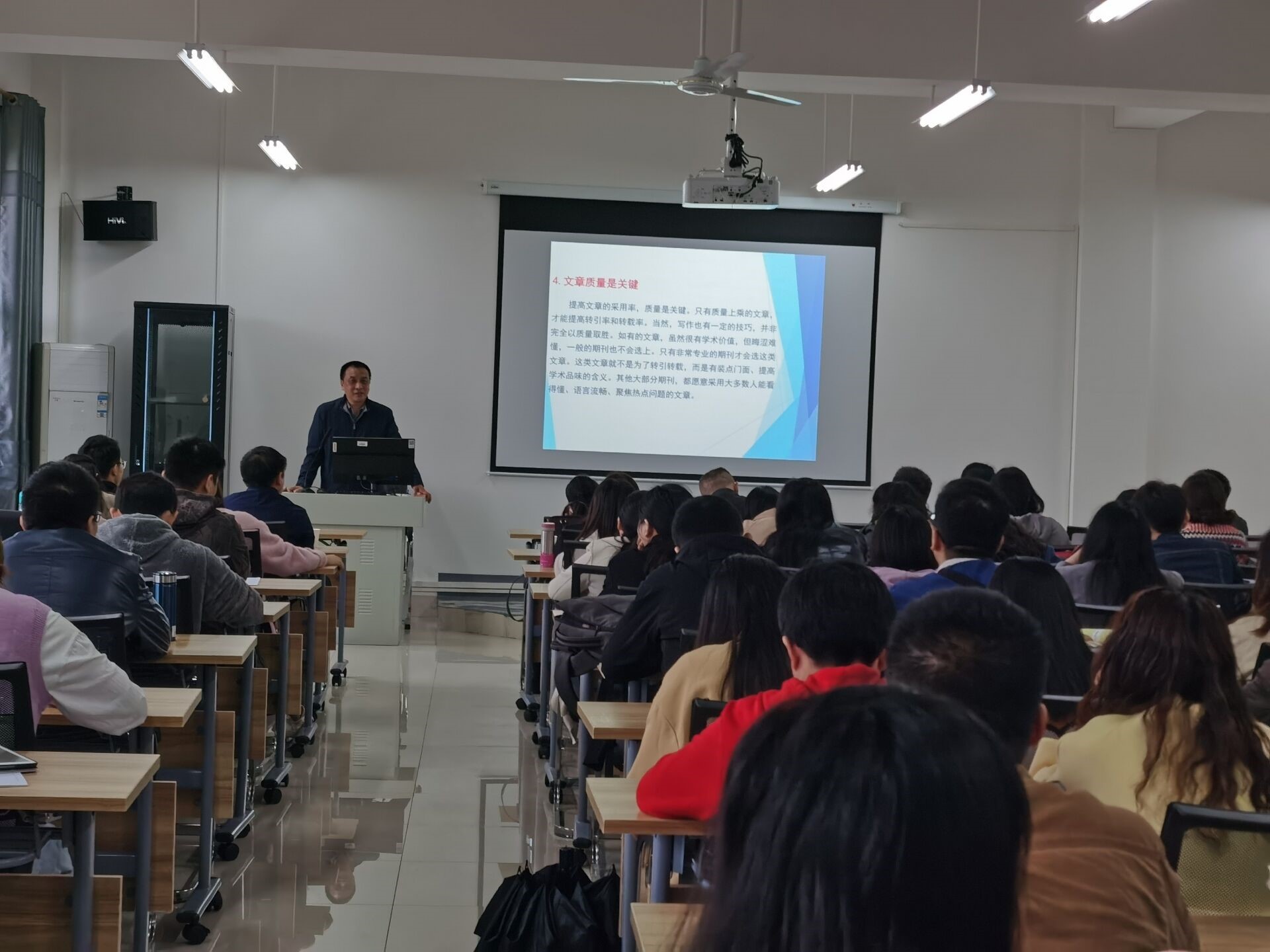 10月16日下午,太阳成集团tyc234cc合并组建20周年暨建校62周年系列活动之“人文社科类核心期刊投稿导引”学术讲座在雨母校区崇德楼418学术报告厅进行,湖南省社科联吴纪宁研究员应邀做了专题学术报告。讲座由太阳成集团tyc234cc经理黄秋生教授主持,太阳成集团tyc234cc、设计与艺术公司等社科领域师生参加了讲学活动。