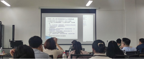 第一阶段为论文撰写与写作规范阶段,徐明责任编辑于线上做了题为《“人大复印资料”转载期刊情况与热点选题分析》的报告。徐博士首先向大家介绍了中国人民大学期刊的整体发展情况以及中心刊物的构成,而后通过四大文摘选文数量以及学科覆盖情况的对比、复印报刊资料与三大文摘高转载期刊的对比、国内六大学术评价机构概况的对比分析中得出,重点论文成果的方向主要是基于原发刊的专题专栏和学者热点研究方向以及学术界“人大复印资料”转载评价的考量。虽,徐博士提出,当代学者要通过点线面,即论文、专题述评和年度分析的结合来构建中国自主的知识体系。徐明责任编辑强调,学术型人才的培养要注重构成学术创新的张力,从而推动学术创新的主动性自觉,构建真正的当代中国学术思想。紧接着,颜佳华教授做了题为《如何对待科研?如何做好科研?》的分享。首先,颜佳华教授开门见山指出,当代教师要有两项基本功,即讲课、写文章。他以个人研究意识形态为例,阐述了研究课题要有能力、有追求的重要性,并指出资料收集要有所侧重,学习他人如何设计题目。而后,在课题申报上,鼓励教师们逢课题必报、坚持报并反复申报。颜佳华教授强调,走得越深越透彻,越容易成功。最后,就科研论文的选题、撰写以及投稿相关注意事项向大家做了详细分析。学术型人才培养道阻且长,学者之间的交流与相互学习的重要性日渐彰显。要多看、多多揣摩专家大家的文章,学习他们的行文表达,做到精炼不失水准。