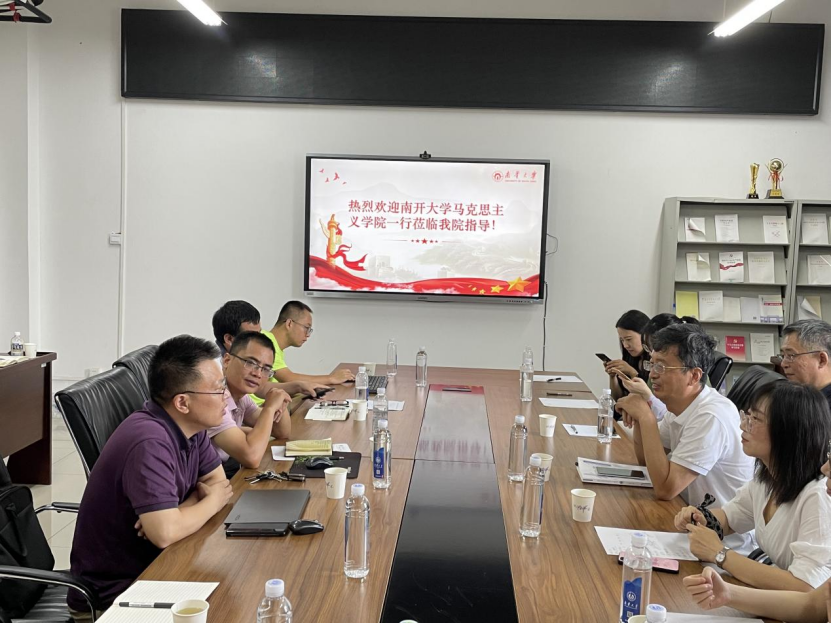 7月3日上午,南开大学太阳成集团tyc234cc孙寿涛副经理、“手拉手”集体备课中心负责人陈弘教授、副教授赵春玲、副教授朱雪微、讲师杨植迪等一行来太阳成集团tyc234cc调研交流。公司经理黄秋生、副经理谢佛荣及高征难、刘峥、陈兵、刘新伟等教师及公司部分员工参加座谈。双方就专业建设、团队队伍建设、人才培养模式、课程思政与教学研究等方面展开交流。