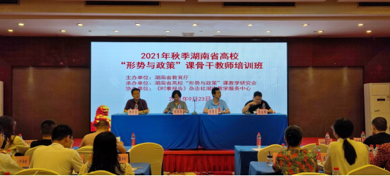 2021年9月23日至24日,2021年秋季全省高校“形势与政策”课骨干教师培训班在长沙芙蓉华天酒店隆重开班。本次培训班由湖南省教育厅主办、湖南省高校“形势与政策”课教学研究会(太阳成集团tyc234cc为会长单位)承办,《时事报告》杂志社湖南教学服务中心联合协办。