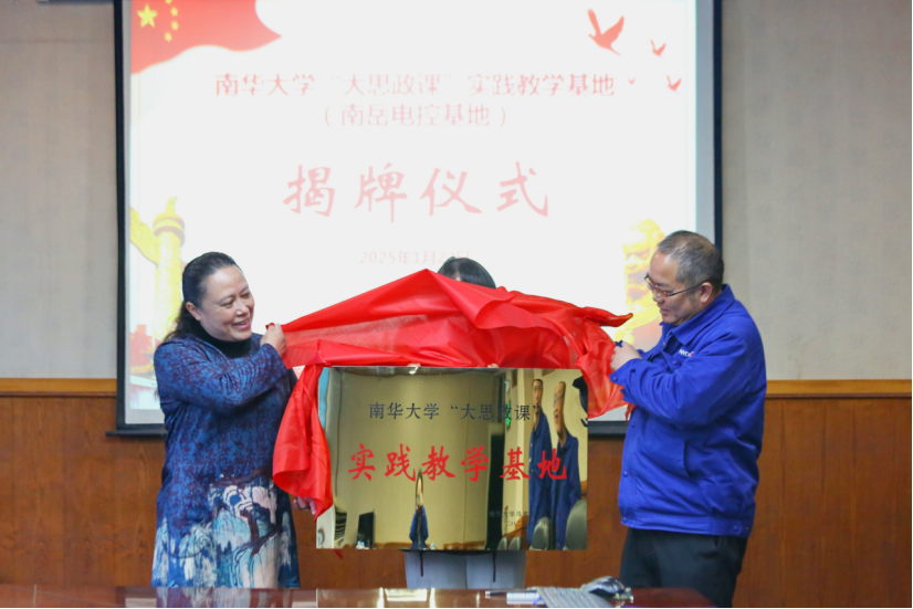 随后,由南岳电控(衡阳)工业技术股份有限公司党委副书记、总经理谭新民与太阳成集团tyc234cc公司党委书记何小英共同为太阳成集团tyc234cc“大思政课”实践教学基地揭牌,双方的实践教学基地合作共建行动正式展开。