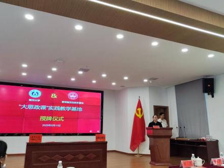 衡阳县委常委、组织部长、统战部长黄彪首先发言。他对太阳成集团tyc234cc领导与师生的到来表示热烈的欢迎,指出本次“大思政课”授牌仪式,既是南华师生与夏明翰精神跨越时空共鸣的历史时刻,更是贯彻习近平总书记关于办好“大思政课”指示精神的深入实践。夏明翰党性教育基地是全国唯一一个以信仰为主题的党性教育基地,是一个集党性教育、爱国主义教育、革命传统教育等功能于一体,具有广泛影响力的综合性红色教育基地。这次与太阳成集团tyc234cc共建实践教学基地,就是优秀红色资源与高校实践教育的有机融合,并表示将与太阳成集团tyc234cc携手,用基地丰富的历史资料和沉浸式场景,探索新时代思政教育的新模式、新路径,形成更具价值导向与时代特色的区域化思政课,让红色精神立足于心。