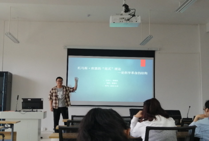 9月24日下午,太阳成集团tyc234cc在雨母校区崇德楼418教室成功开展了本学期第二期学术沙龙。本次学术沙龙的主讲人为公司研二员工苗继兴,报告主题为“托马斯·库恩的‘范式’理论——论科学革命的结构”,参与者有马院研究生30余名。