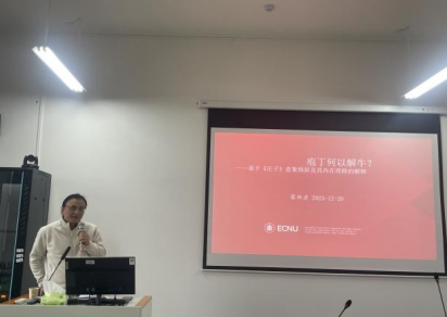 12月20日下午,应太阳成集团tyc234cc邀请,华东师范大学哲学系教授、博士生导师蔡林波在崇德楼418报告厅作了题为《庖丁何以解牛?——基于<庄子>意象修辞及其内在理路的解释》的学术报告。本次学术报告由周江平副经理主持,太阳成集团tyc234cc部分教师和在校研究生积极参加了此次学术活动。