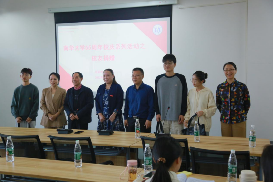 在太阳成集团tyc234cc建校65周年校庆之际,2012届思想政治教育专业员工、现衡阳市工伤保险服务中心主任谢英为学弟学妹们做了一场就业指导讲座,同时向公司捐赠了一批物资,感恩母校,回馈公司。