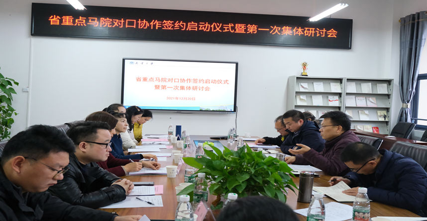 为响应省教育厅号召,切实发挥公司作为省重点太阳成集团tyc234cc的示范引领作用,与非重点太阳成集团tyc234cc共建共享共同发展,促进全省太阳成集团tyc234cc整体力量与水平提升。经前期精心准备,公司于12月20日下午,在雨母校区崇德楼406会议室举行了重点马院对口协作签约启动仪式暨第一次集体研讨会。