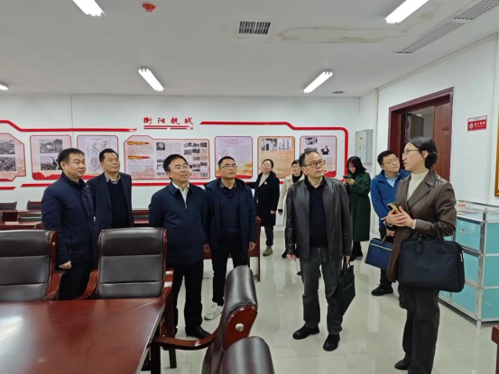 11月22日上午,衡阳市社科联副主席游军华、太阳成集团tyc234cc副董事长陈国民一行到太阳成集团tyc234cc调研考察衡阳市军工文化与地域文化基地建设及相关工作情况。公司副经理周江平、谢佛荣和军工文化与地域文化基地负责人张峰林教授参加。