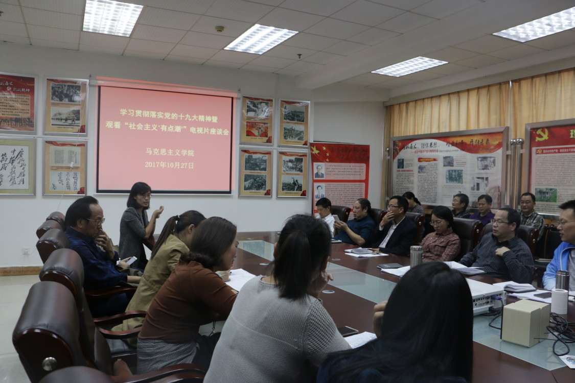 为深入学习贯彻党的十九大精神,公司党总支于2017年10月27日下午在1教1303会议室举办了学习贯彻落实党的十九大精神暨观看“社会主义有点潮”电视片座谈会。座谈会由公司党总支书记肖宗志主持,公司全体教职工参加了座谈会。
