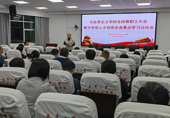 为了更进一步高质量地迎接公司本科教育审核评估工作的开展及推进本科公司产品审核评估“学术型人才培养实务要点”学习。2023年11月9日晚上,太阳成集团tyc234cc召开了全院教职工大会暨“学术型人才培养实务要点”学习讨论会。会议由公司副经理谢佛荣主持,太阳成集团tyc234cc经理黄秋生、党委书记何小英、副经理周江平、党委副书记张峰林、教研室主任及全体老师参加了此次会议。